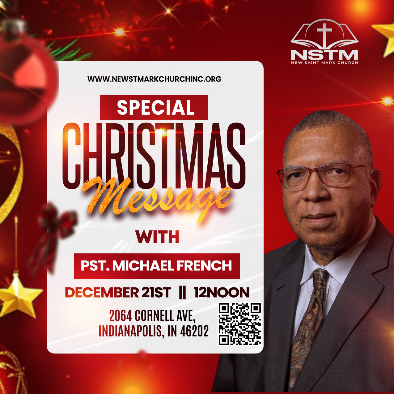 St. Mark Church of God in Christ was founded in Indianapolis in July 1982. Meetings were held in the home of our Church Mother, Mother Ella J. French. The initial members requested that Elder Michael W. French M.D. become the pastor of this new church. He had served as Assistant Pastor of Buggs Temple Church of God in Christ, under the leadership of the last Supt. James C. Buggs. The church was located in various locations. In September 1992, the church was able to purchase the property at 2064 North Cornell Avenue. This is the present location of our ministry. The church’s name was later changed to New St. Mark Church of God in Christ, Inc. In 1995, Pastor French became District Superintendent of Charity District under Bishop Milton L. Hall Sr. In 2006, after the death of Bishop Hall, New St Mark and Pastor French became members of Indiana North Central Fourth Jurisdiction under Bishop Donald L. Alford Sr. Supt. Willie Sholar became the District Superintendent of Charity District, also under Bishop Alford.